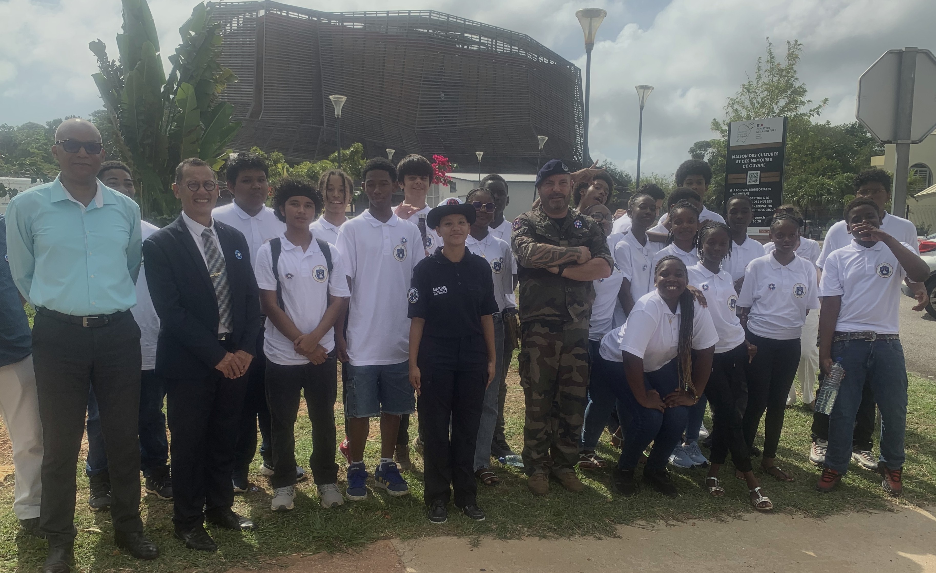 Le 11 novembre 2025, les élèves de la classe défense ont participé à la cérémonie commémorative de l’Armistice, accompagnés de M. Cauret, IA-DAASEN, région académique centre-est, M. Patient, chargé de mission Réussite Éducative, du Capitaine d’armes Guillaume Pery de la base navale de Dégrad des Cannes et de Mlle Rhianna Tolosa Santana, ancienne élève de la classe défense, effectuant une préparation militaire marine.